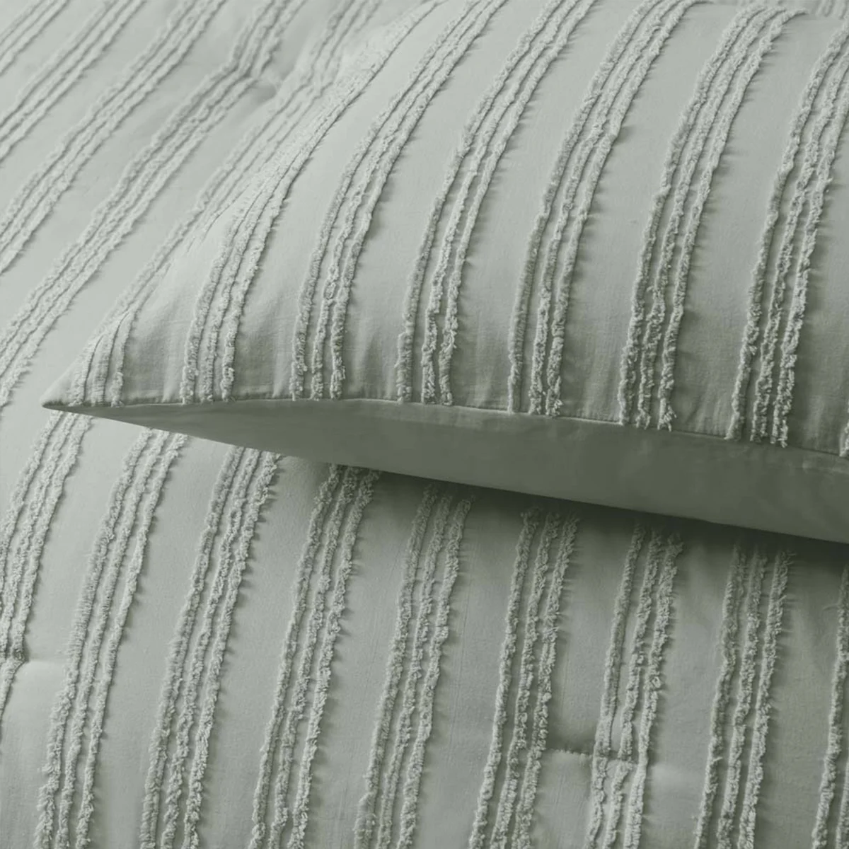 Change the look of your bedroom by adding some texture with the Reflections Sage 3 Piece Comforter Set by Vintage Design Homewares. This comforter set is made from 100% cotton cover with 100% Polyester filling, keeping you comfortable all night long. Our design features chenille stripes running down the comforter and pillowcases with quilted horizontal stripes adding that chic, minimalist style.