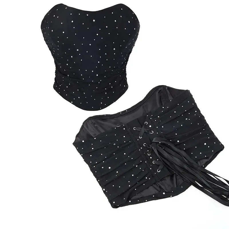 Black Brocade Lace-Up Halter Corset Plus Size Vintage Gothic Corselet - Xxl