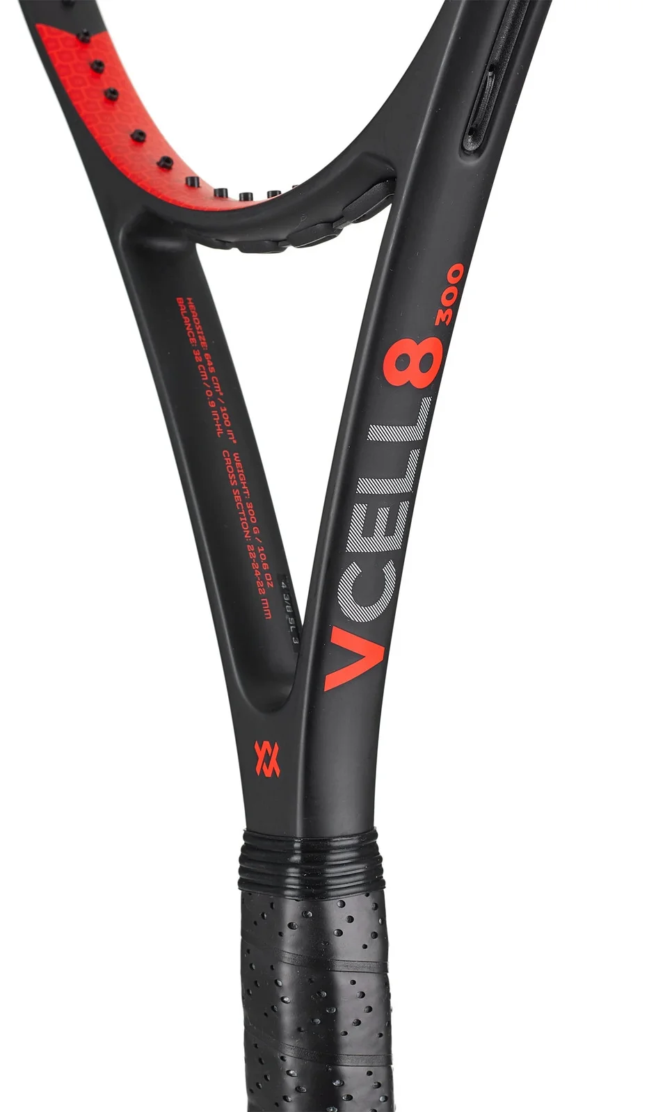 Volkl adds another chapter to one of its signature modern player's racquets. Named the V-Cell 8 300g, this 11 ounce racquet is ideal for the intermediate player who wants a crisp and spin-friendly weapon. It should also work for the advanced player who wants a light option or a great platform for customization. For this update, Volk adds extra V-Cell material (a cellulose based carbon) to the shaft and head for a more comfortable, stable and responsive hitting experience. Like the previous generation, this racquet's butt cap and innovative REVA based handle system have been meticulously designed to deliver a smoother, more arm-friendly feel at impact. From the baseline the V-Cell 8 300g is defined by easy acceleration and spin-friendly precision. Full swings are rewarded with surgical targeting. The low swingweight makes it great for scrambling on defense or cranking winners on the run. At net the V-Cell 8 300g moves into position with lightning speed, making it great on quick exchanges. Aggressive servers will find enough precision and spin to swing for power. As one of the fastest racquets in its class, this is a great option for aggressive ball strikers who place a premium on maneuverability.