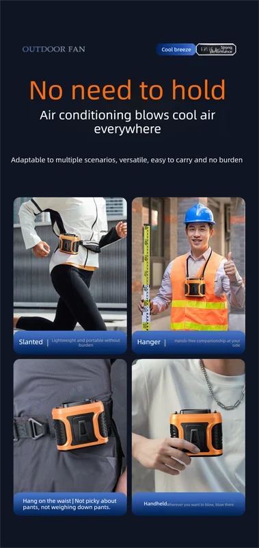 This "Mobile Small Air Conditioner" is designed to be your personal cooling companion. The clever dual-clip system secures the fan to your waist while keeping your shirt untucked to channel airflow up your back—a game-changer for anyone working under the hot sun. It is not just for work; take it fishing, hiking, or use it while gardening to stay comfortable. The built-in flashlight adds extra utility for camping or night shifts.