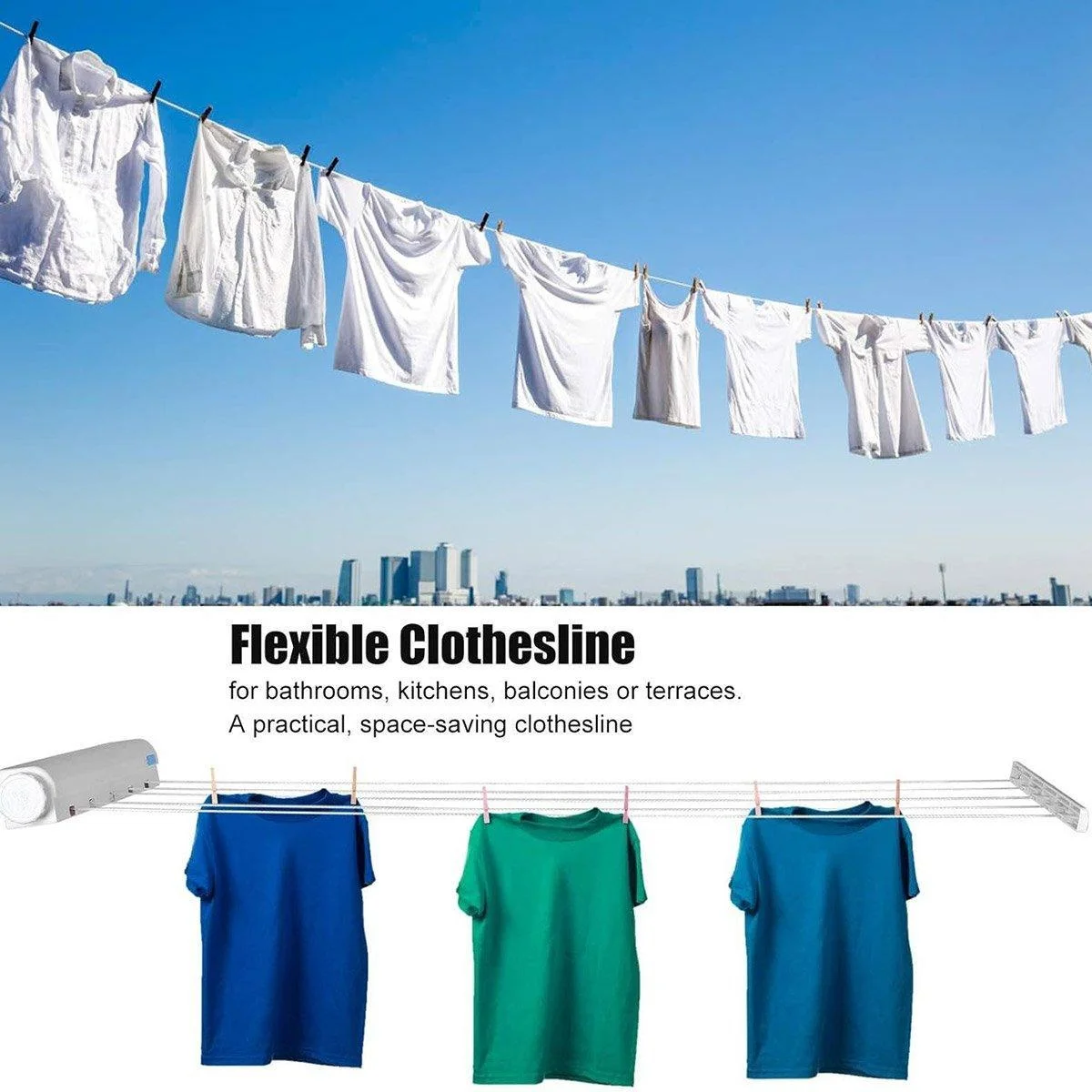 Experience the convenience of our retractable clothesline, perfect for saving space in small areas. This model offers 4/5 lines with a spring mechanism for easy retraction and durability.