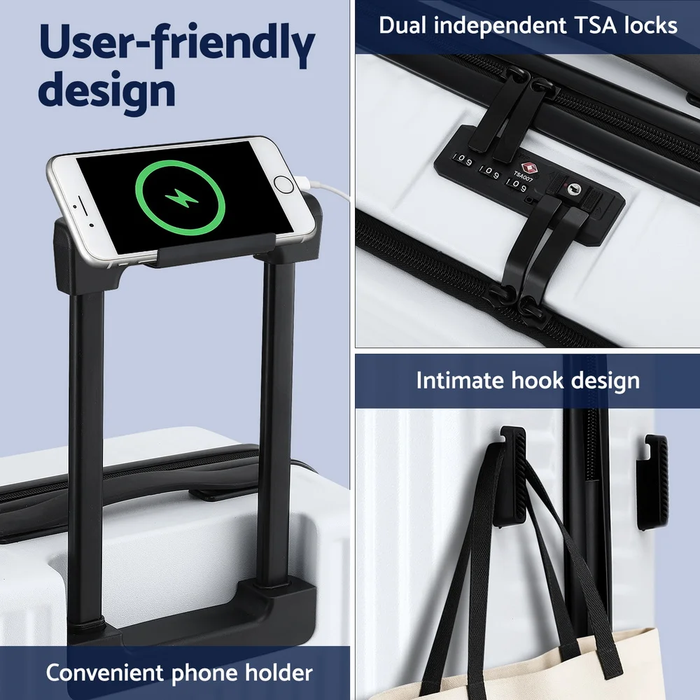 Travel in style and convenience with Wanderlite 20" carry-on front pocket luggage featuring a quick-access front pocket for your phone and travel essentials, plus a padded laptop compartment that fits up to 15.6" devices.