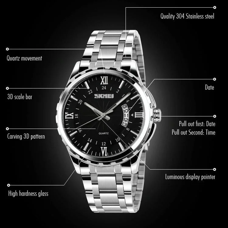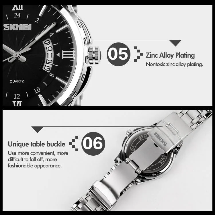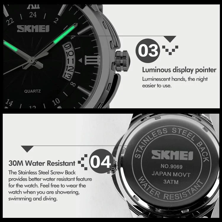 Men Automatic Mechanical Watch with Two-tone Stainless Steel Strap - Silver Shell Blue Surface