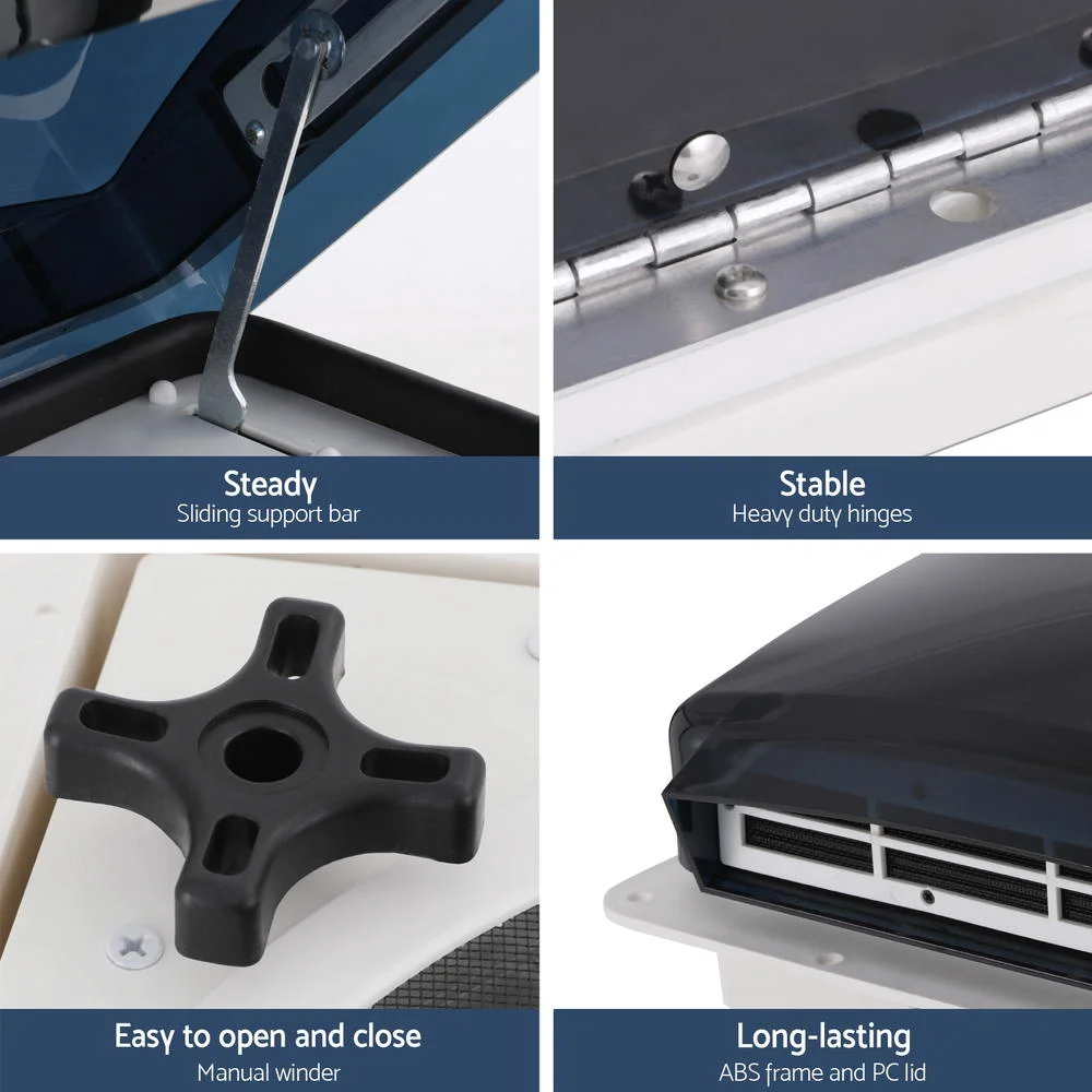 Need a breath of fresh air while travelling? The Weisshorn Caravan Vent is designed to enhance fresh air circulation in your caravan with ease. With its 50 degree wide-angle opening, it allows for maximum airflow, ensuring a comfortable and refreshing environment inside. Whether it's summer or winter, this vent is suitable for use in all seasons and weather conditions. One of the key features of our caravan vent is its low-noise operation, ensuring a peaceful and quiet atmosphere inside your caravan. Additionally, it effectively prevents insects from entering thanks to the stainless-steel flyscreen, providing you with a bug-free space to relax and enjoy your time. The single-speed reversible fan helps to keep moisture and odours out of your caravan. Furthermore, this vent is compatible with various roof thicknesses, making it versatile and easy to install. Upgrade your caravan with our caravan vent and experience improved air circulation and comfort like never before with the Weisshorn Caravan Vent.
