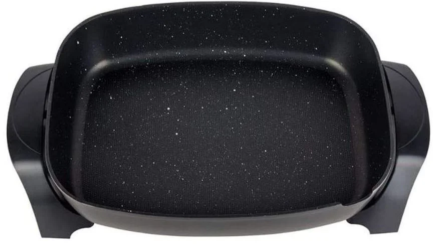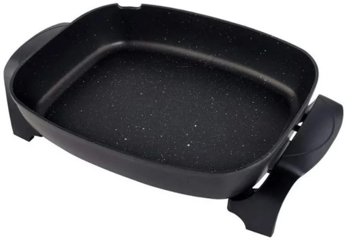 Make cooking easy with the XL Electric Fry Pan, which comes equipped with a thick cast aluminum body, and a heavy duty non-stick coating for easy cleaning. Tempered glass lid and thick cast aluminium body Cast-in heating elements Trigger release temperature control probe Cool-touch knobs and handles Heavy duty non-stick coating with stone finish Highlights: Dishwasher safe Easy-pour spout Extra large size 53× 34× 20cm.