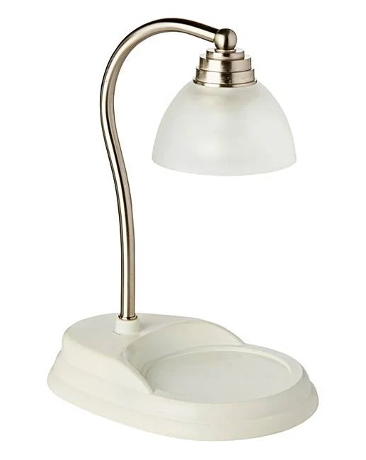 The Aurora Candle Lamp is inspired by mid-century desk lamps, with a classic curve and frosted glass shade. Our top-down warming technology provides the look and fragrance of a lit candle without the flame, soot and smoke. A large pool of melted wax at the top of the candle releases a cleaner, stronger fragrance that lasts up to twice as long compared to burning a candle. Accommodates most jar candles. A variety of styles are available, making them a choice accessory for any room. We recommend lamps and lanterns for melting larger candles. Bottom up warmers are not effective at warming larger candles quickly.