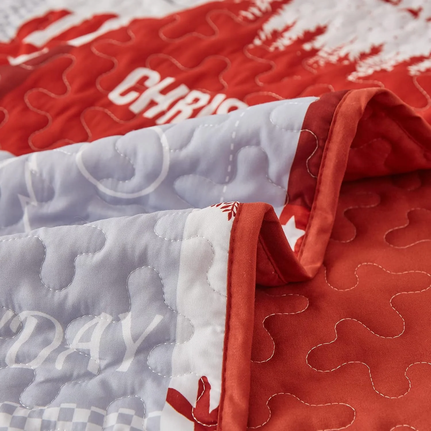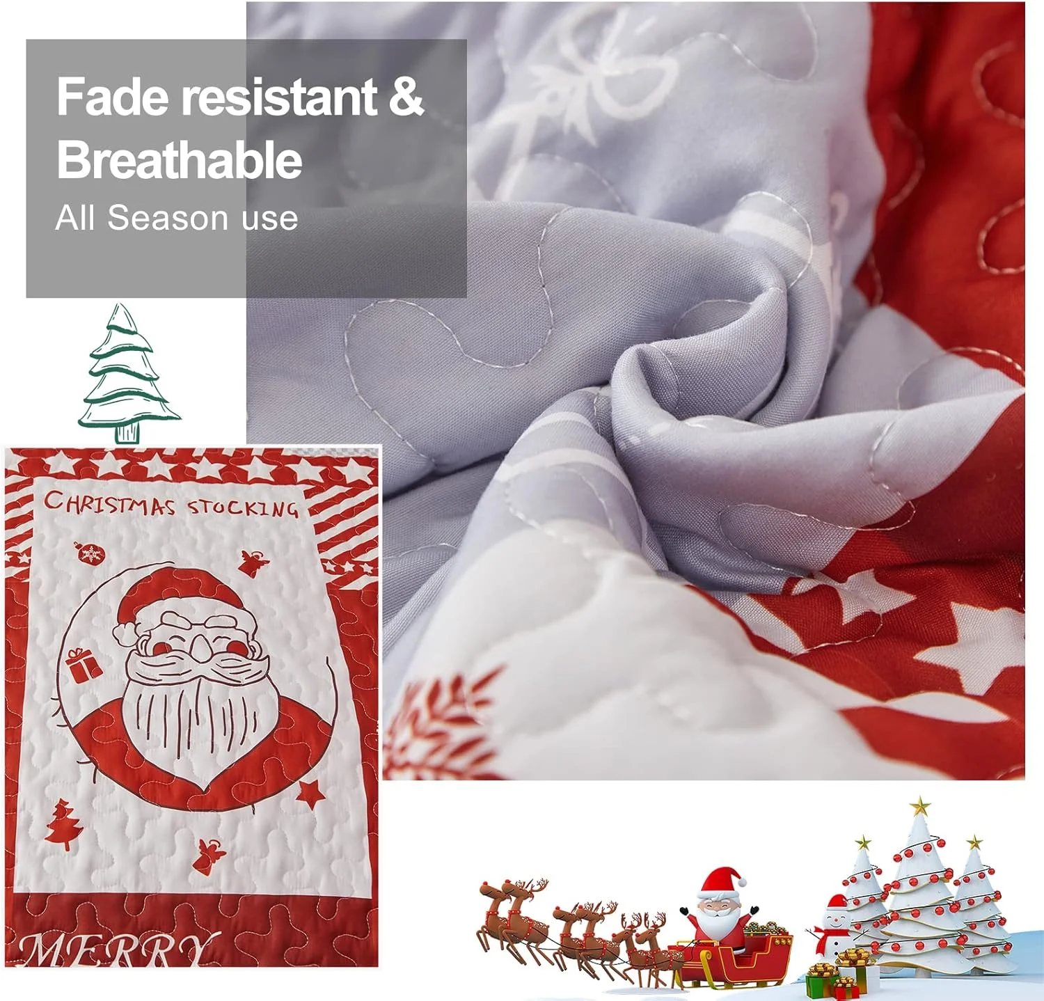 Enhance the comfort and charm of your bedroom this holiday season with our Queen Size Christmas Quilt Bedspread Set. Featuring delightful Santa Claus, reindeer, snowman, and snowflake designs, this reversible coverlet is perfect for creating a cozy and festive retreat.