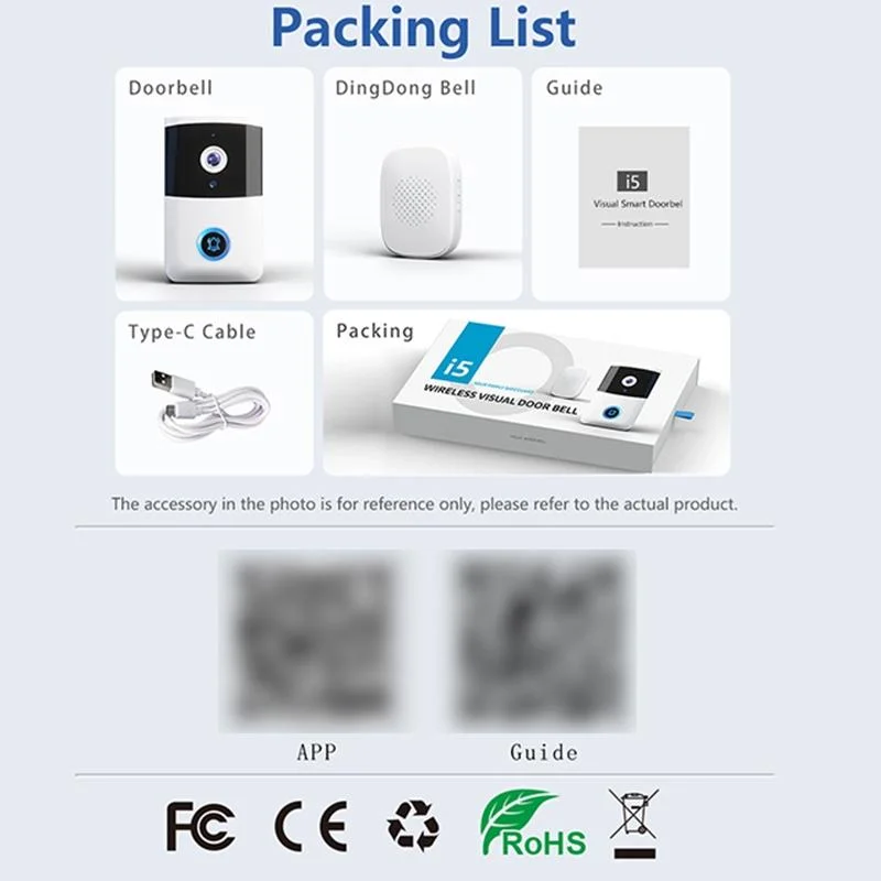 Package Includes:• 1 x Hd Wireless Bluetooth Wifi Security Camera Visual Doorbell Anti-Theft Support Bidirectional Voice Intercom White