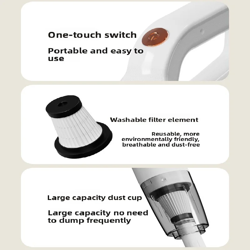 This wireless vacuum cleaner is engineered for modern homes that demand both power and practicality. Whether you're tackling cat or dog fur on carpets, cleaning crumbs from kitchen floors, or removing dust from furniture edges, this device adapts seamlessly. The detachable design allows you to use it as a handheld unit for spot cleaning or attach the extension pole for full-room sweeping. With its washable components and durable construction, it’s built for repeated use without sacrificing efficiency.