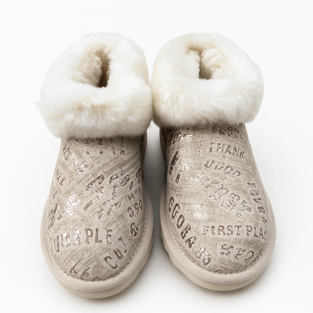 Cosy mornings, chilly nights or lazy Sundays — these Aussie sheepskin wool UGG boots are the ultimate treat for your feet. With a snug, plush interior and stylish mini ankle cut, they're perfect for lounging at home or adding a touch of warmth and luxe to your casual outings. The sand-toned suede upper is accented with metallic script detail for that bit of extra sparkle, while the thick wool cuff brings the comfort levels to maximum.