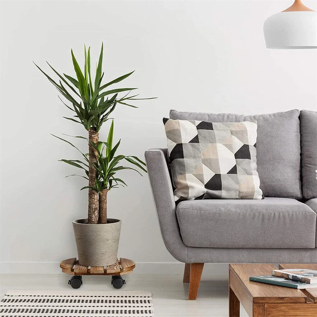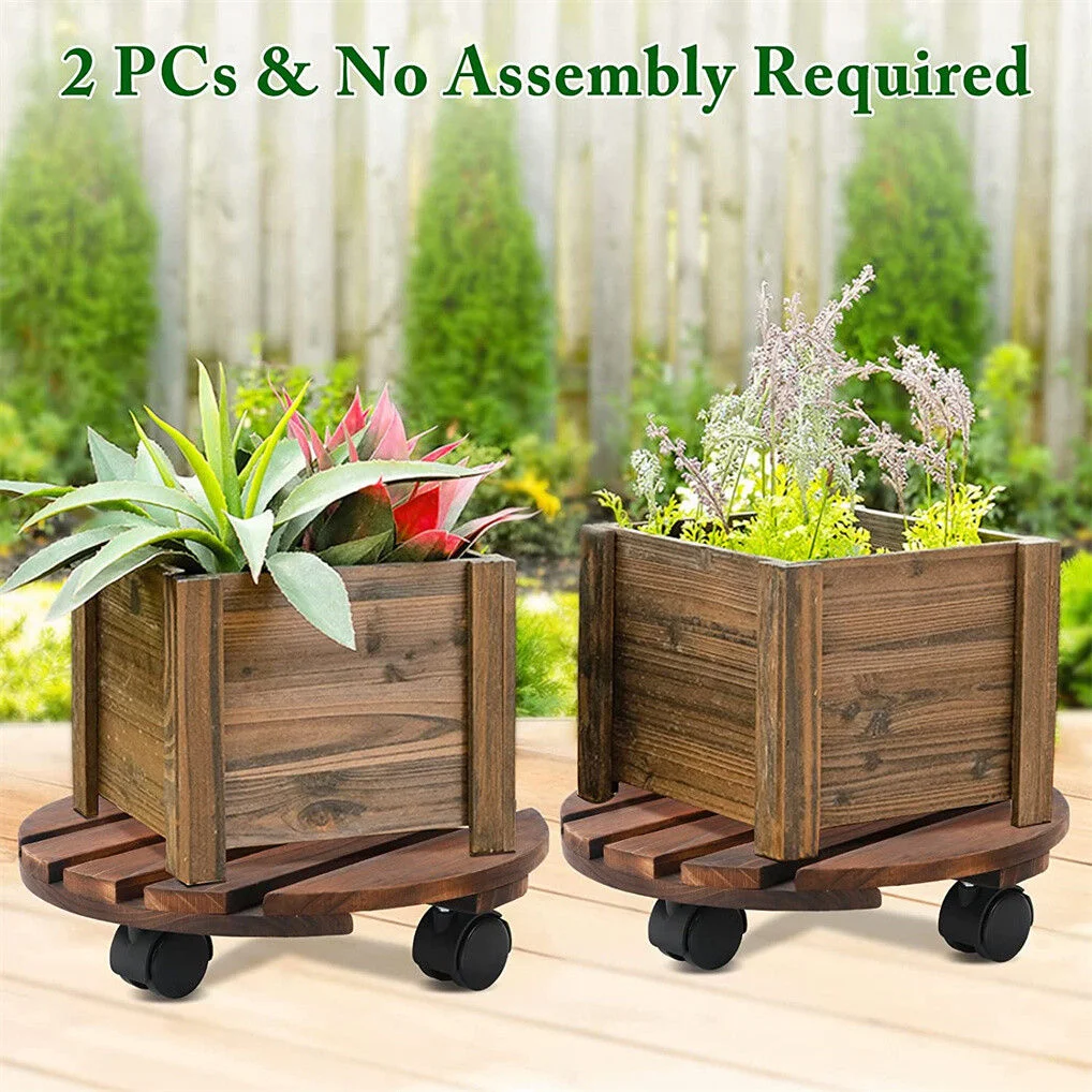 Wooden Plant Caddy Stand 2-Pack 360� Rotating Casters