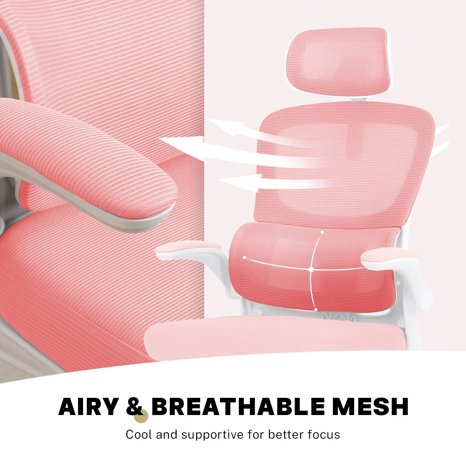 La Bella Work Office Chair - Lumber Support, Flip-up Armrest, Adjustable Headrest SITIO - Pink